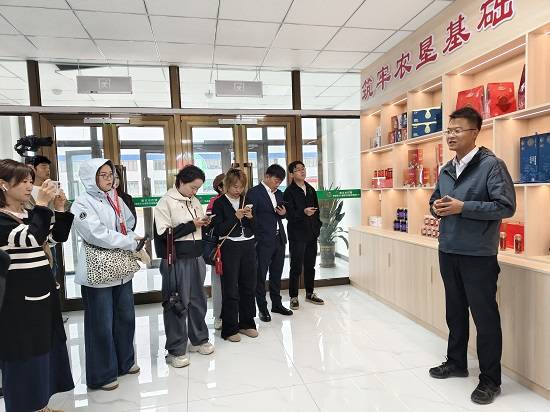 格尔木农垦(集团)有限公司格尔木特色生物产业园副主任邢亮德向大家介绍枸杞新产品(刘彩荣 摄)