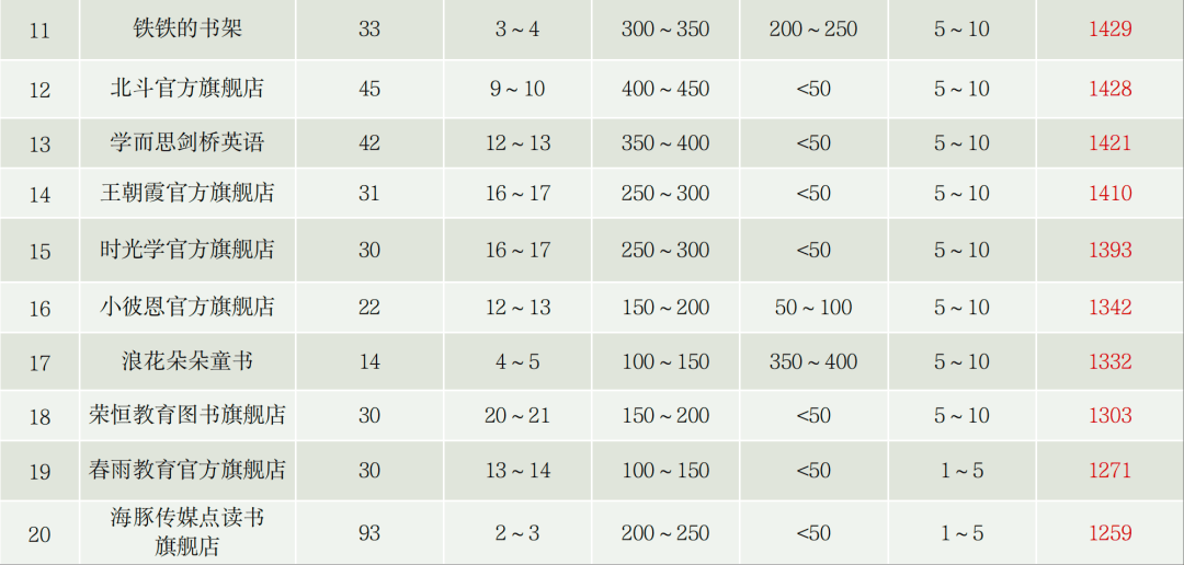 “天天出版社童书优选”从上期出版、发行机构的第245位升至本期第96位,上升149个位次;“党史出版社”从上期第256位升至本期第136位,上升120个位次;“北京科学技术出版社”由上期第191位升至本期第116位,上升75个位次。图书公司自播: