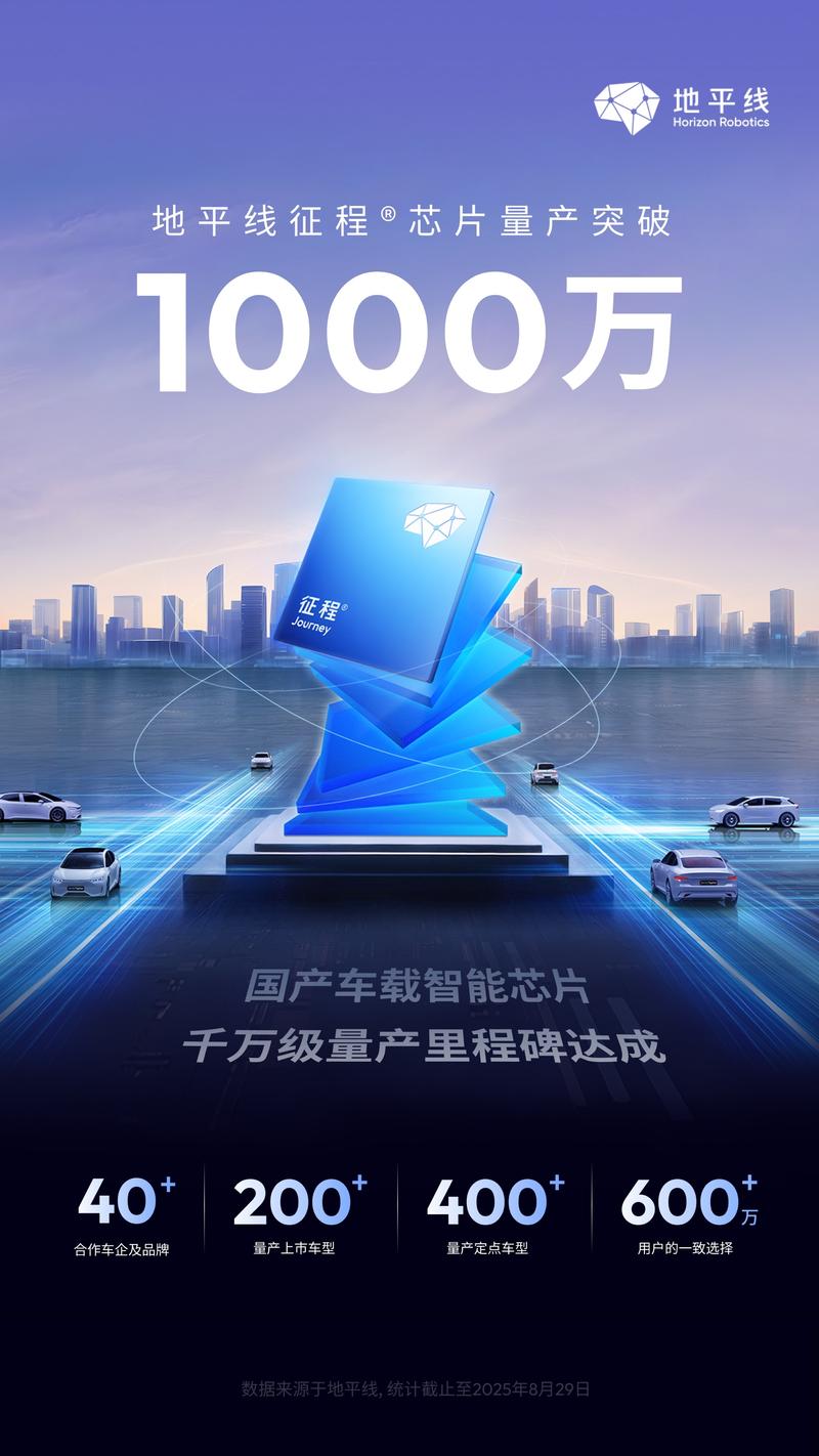 截至今年8月,地平线万套,这一里程碑式的成果让地平线成为国内首家达成千万级出货量里程碑的智驾科技企业。