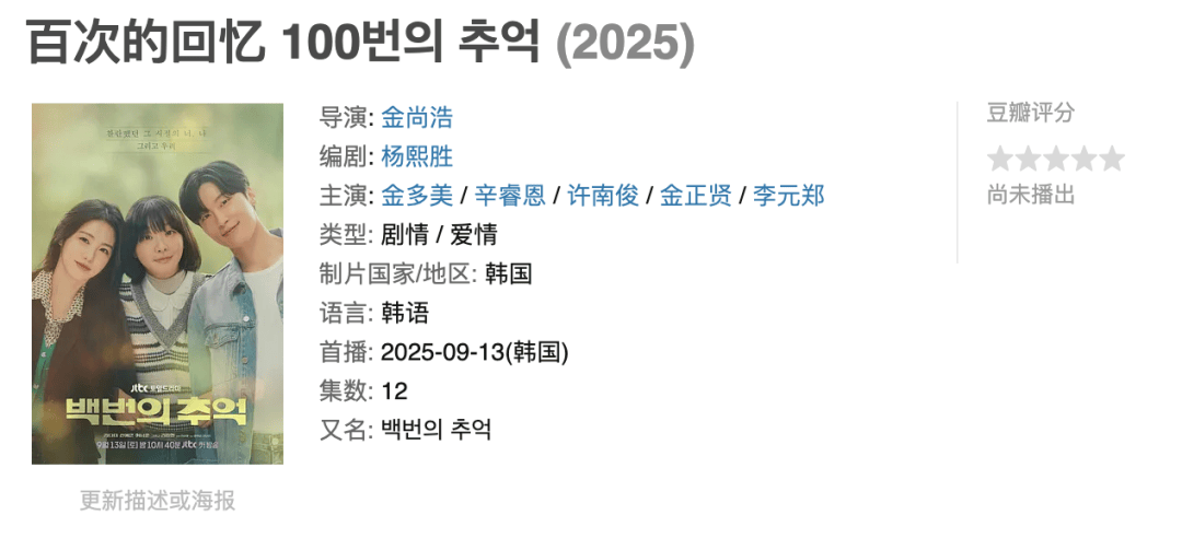 宋仲基与千玗嬉合作出演的爱情剧,据说不是那种快餐式爱情剧,而是更关注角色的成长。该剧号称聚焦“青春的遗憾与重生”,以细腻的情感描绘和现实主义风格去讲述一个成长的故事。