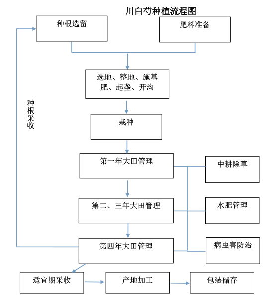 四川中江县自然气侯和土壤生态条件优越,有利于白芍中药材的生长发育,白芍栽植历史悠久、发展快、在国内外影响很大,一直是中江县出口创汇的道地药材。中江白芍栽培,源于清乾隆时期,始载于公元1812年《中江县志》(嘉庆版)。现中江县白芍种植主要集中在瓦店乡、富兴镇、集凤镇、古店乡、石泉乡、合兴乡、辑庆镇、玉兴镇等十八个乡(镇),种植、加工技术纯熟。现将川白芍种植及生产工艺流程总结如下: