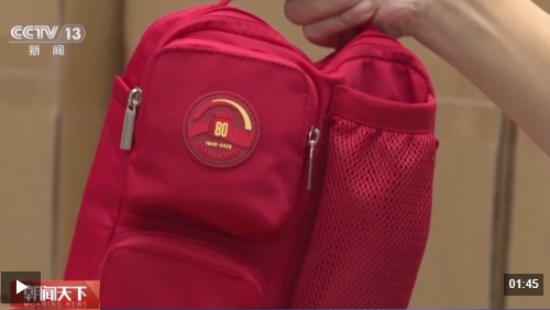 观礼台服务指挥部现场服务及用品保障部工作人员 任思雨:每一件观礼包内的物品都是经过精心包装和设计,来保证严丝合缝放到包内,确保整体的美观和整洁。在所有的分装步骤完成之后我们会对单包进行称重,每只在1.47~1.52千克之间。