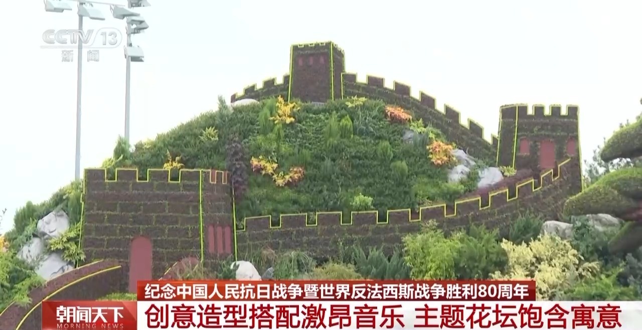 总台记者 邵薇:此次纪念活动,广场的景观布置遵循“尚中”的原则,也就是以北京中轴线为主要通道,两侧对称布局。在颜色的选择上也相对统一且庄重,分别是红、金、绿。最具代表性的是这两座年号台,宛若两扇矗立的大门缓缓拉开一场大幕。同样,它也选择了长城这一国际性的文化符号。 最下方绿色的自然花境象征着大地,而在大地之上是缓缓升起、泛着金光的红日,不仅托举起两个重要的年份,更是象征着中华民族前进的曙光。在正式活动当中,三军仪仗队将会在人民英雄纪念碑下集结出发。