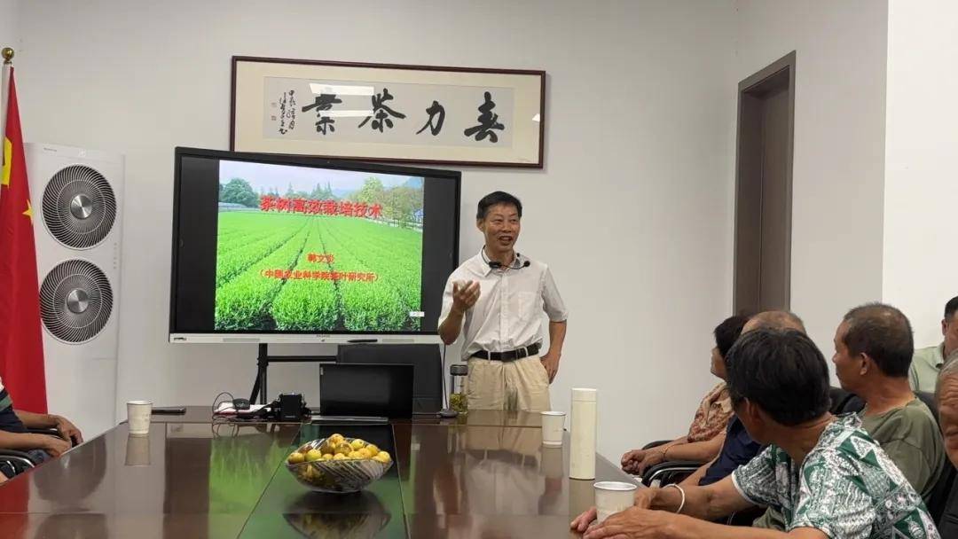 培训现场,韩教授聚焦茶园管理中的诸多痛点问题,从茶园施肥技术、茶园锄草与耕作技术、茶树修剪技术、主要病虫防控技术以及茶树除花技术这五大维度,进行了深度且细致的讲解。每一个技术要点,韩教授都结合实际案例,用通俗易懂的语言娓娓道来,让茶农们听得懂、学得会、用得上。