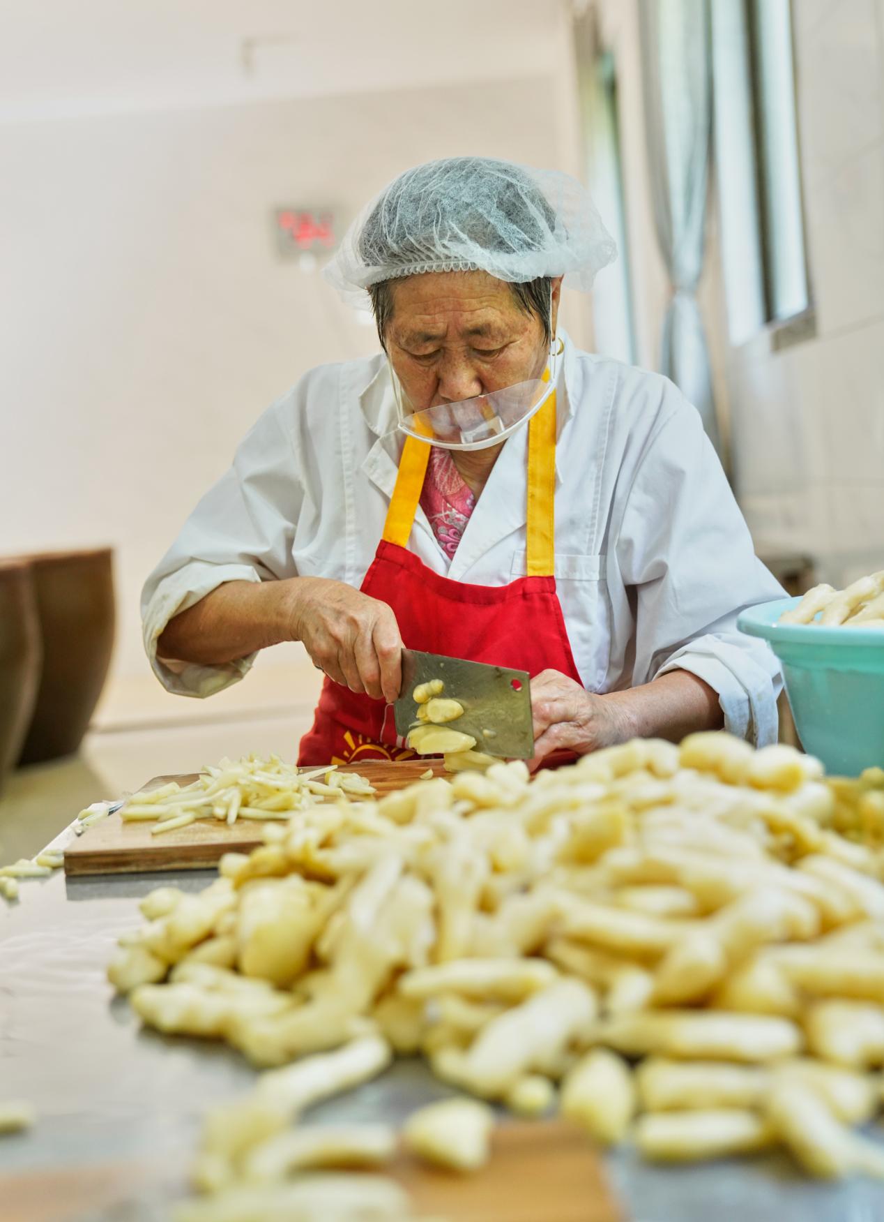铜陵白姜历史悠久,早在春秋时期就有种植,距今已有2000多年历史,其制作技艺承载着深厚的文化底蕴。作为铜陵白姜制作技艺省级非遗代表性传承人,同时也是佘家贡姜厂的负责人,金如林对铜陵白姜有着特殊的情感。他采用祖传工艺与现代科技相结合的方式,坚守从白姜种植到加工的29道工艺,将佘家贡姜厂发展成集生姜种植、采摘、加工、销售、科普教育、文化展示于一体的企业。