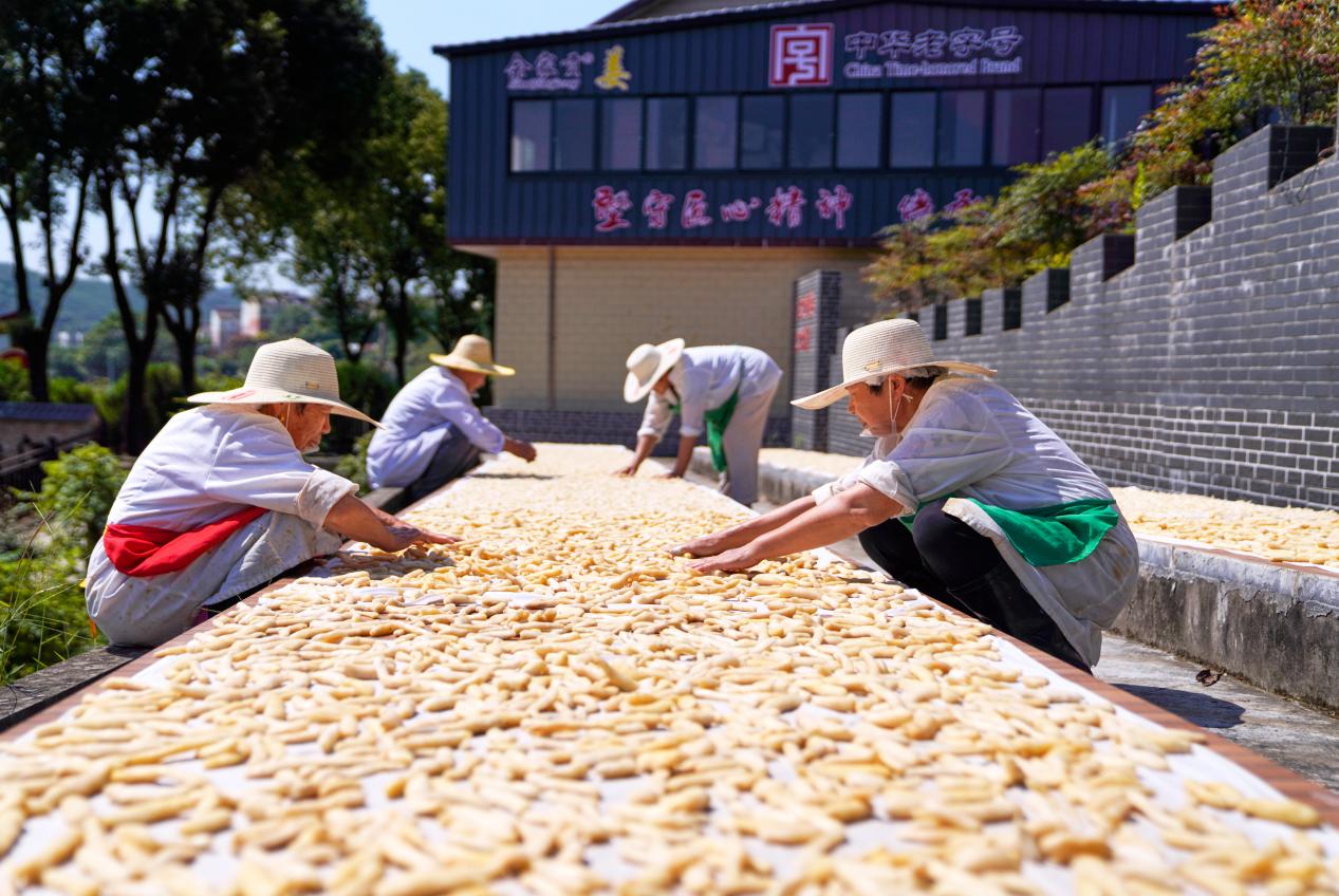 9月15日,在铜陵市郊区大通镇金华村的佘家贡姜厂内,工人们正忙碌地腌制、晾晒生姜,空气中弥漫着浓郁的姜香。省级非遗代表性传承人金如林往返于生产区间,仔细查看每一道工序,确保生姜加工品质。